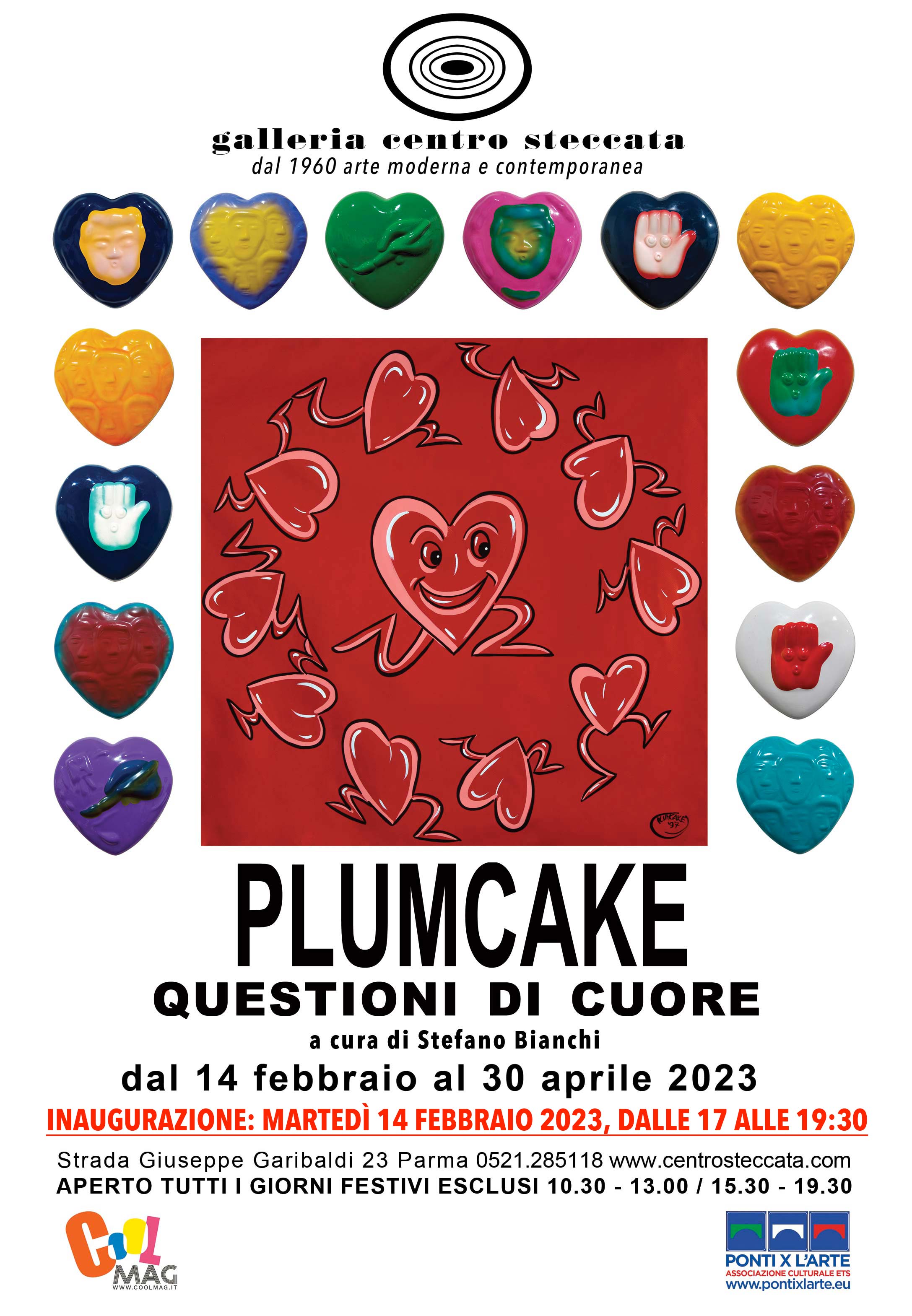 In occasione del quarantennale del gruppo artistico Plumcake, la Galleria Centro Steccata in collaborazione con il team dell’Associazione Culturale Ponti x l’Arte di Parma hanno realizzato un’inedita e sorprendente esposizione, dove il Cuore è il predominante ed esclusivo simbolo Pop. La mostra “Plumcake – Questioni di cuore” è visitabile dal 14 febbraio al 30 aprile 2023.