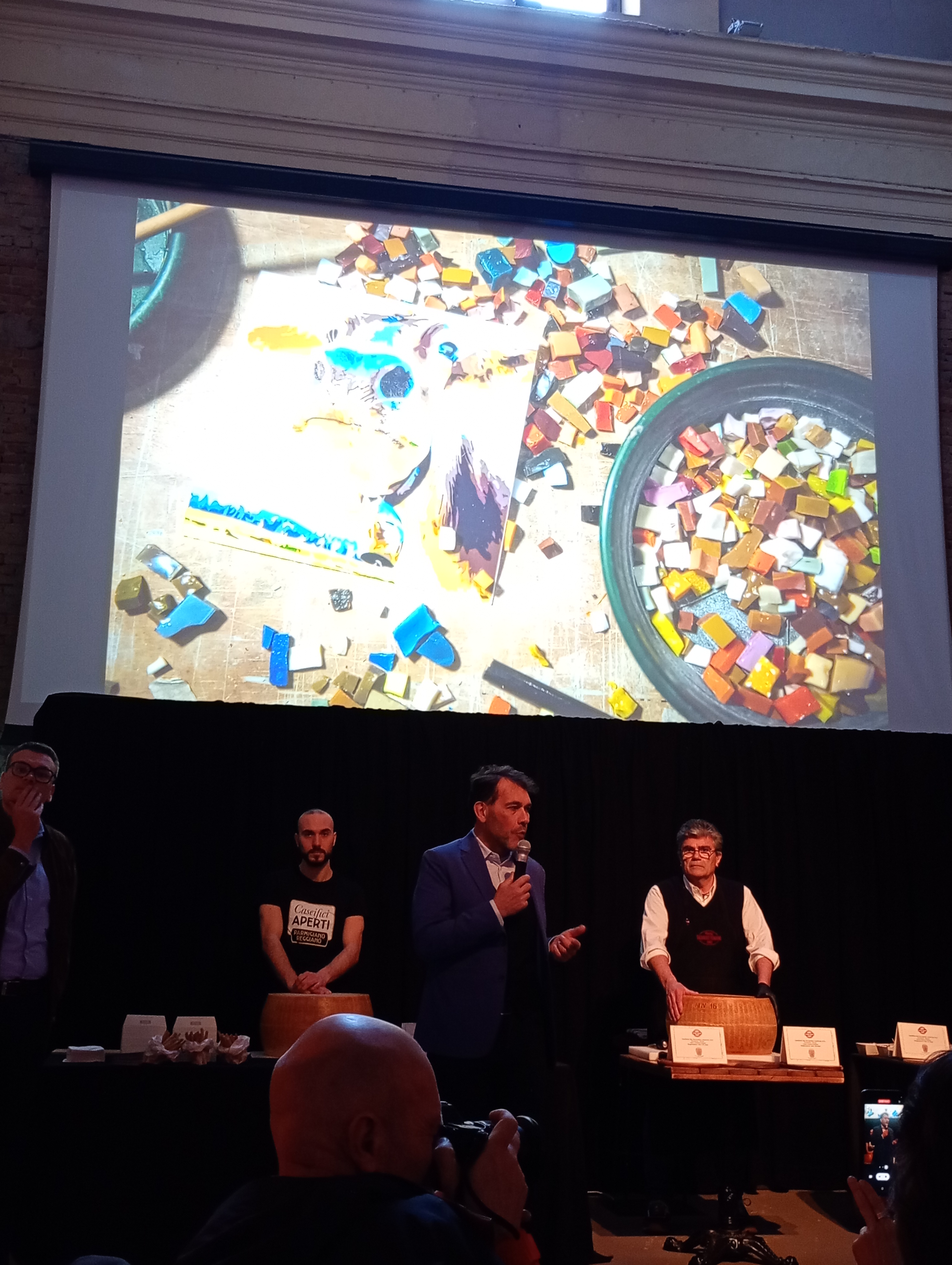 Una nuova serie di sampietrini è stata presentata lo scorso venerdì 11 aprile durante il Mosaic Party ospitato dallo spazio Colonne 28 a Parma, nell’ambito di “Caseifici Aperti 2025“. Le ultime opere del mosaicista Giuseppe Fornasari hanno tutte soggetti legati al Parmigiano Reggiano e celebrano l’unione tra il Re dei formaggi e l’arte del mosaico. Un progetto speciale che coniuga gusto e bellezza.