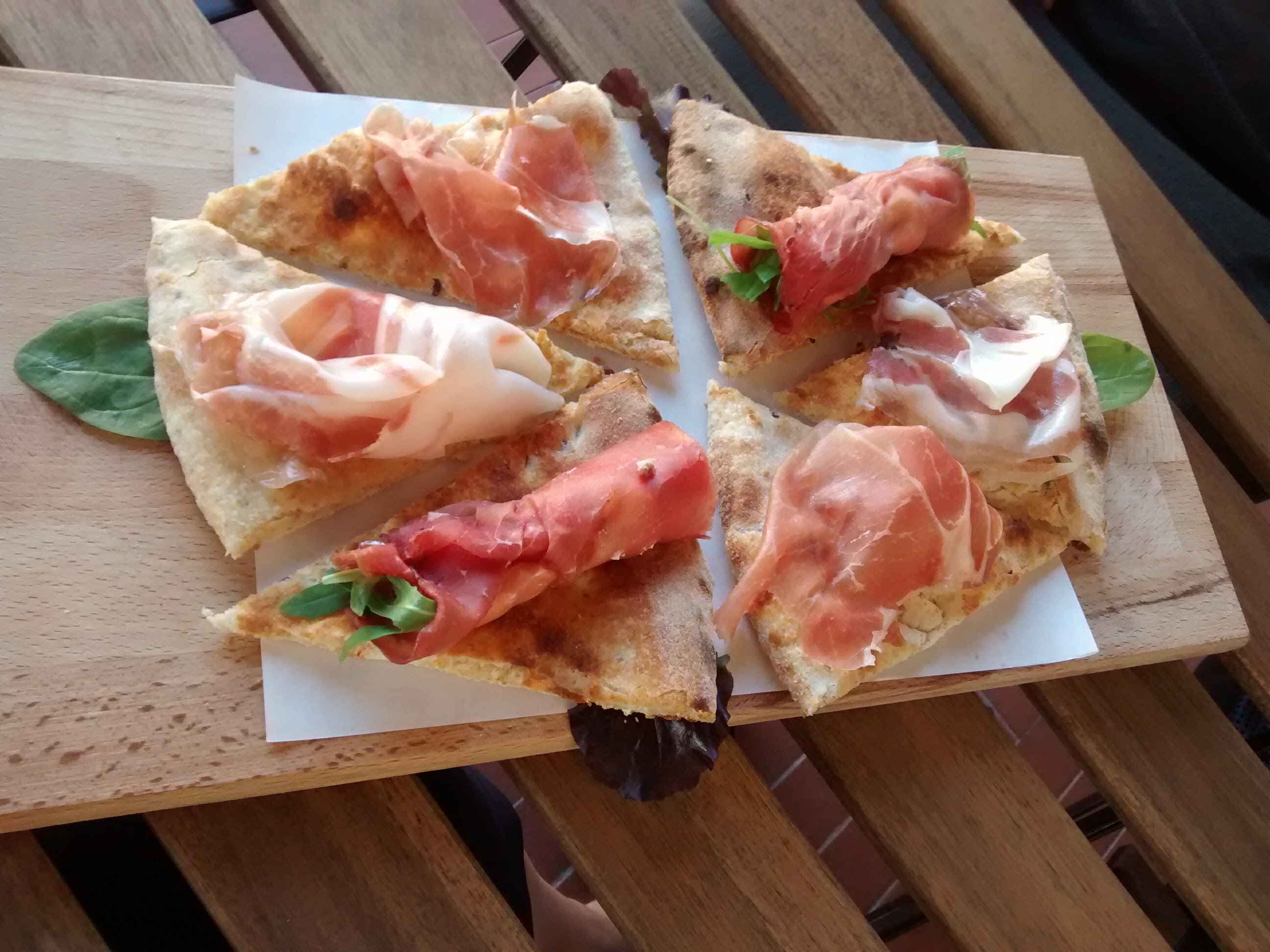 “I clienti entrano e chiedo una margherita da asporto. Poi vedono la mia vetrina e desiderano assaggiare le mie creazioni, con molta curiosità”, racconta Dante, il titolare. E non è difficile credergli viste le forme e colori delle sue preparazioni gastronomiche a base di impasti decisamente insoliti e rigorosamente BIO: farina macinata a pietra, farina di kamut e farina di canapa.
