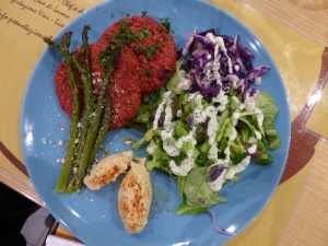 Un menu leggero, naturale e policromo è stato cucinato e servito dalla cuoca Chiara Ceci durante la serata “Detox e Brucia Grassi” del ciclo Salute & Benessere che si è tenuta nei giorni scorsi da JAKI – Cafè & Cucina Naturale – a Parma: cruditè di stagione con ricottina di soya e aromatiche, vellutata di erbe di campo con ortica e tarassaco, burgher di miglio e barbabietole rosse, insalatina con salsa tzatziki di sedano, hummus di ceci saporito e asparagi al forno; infine mousse di fragole e papaya, il tutto accompagnato da estratti di frutta e verdura e una tisana finale.